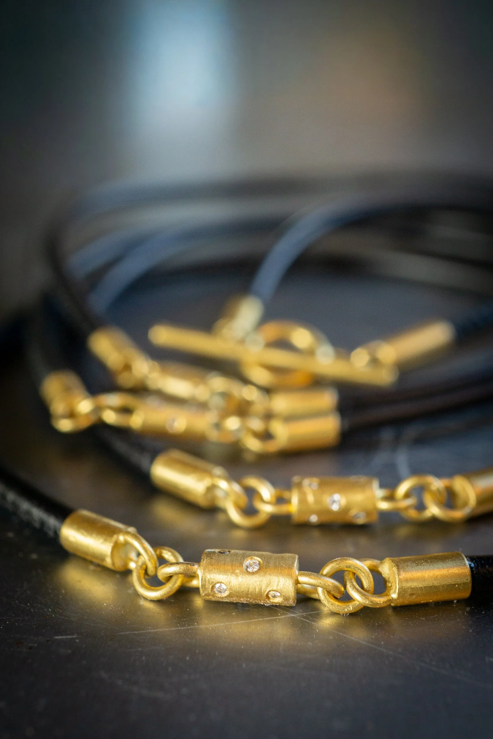 22k gold, diamonds, leather