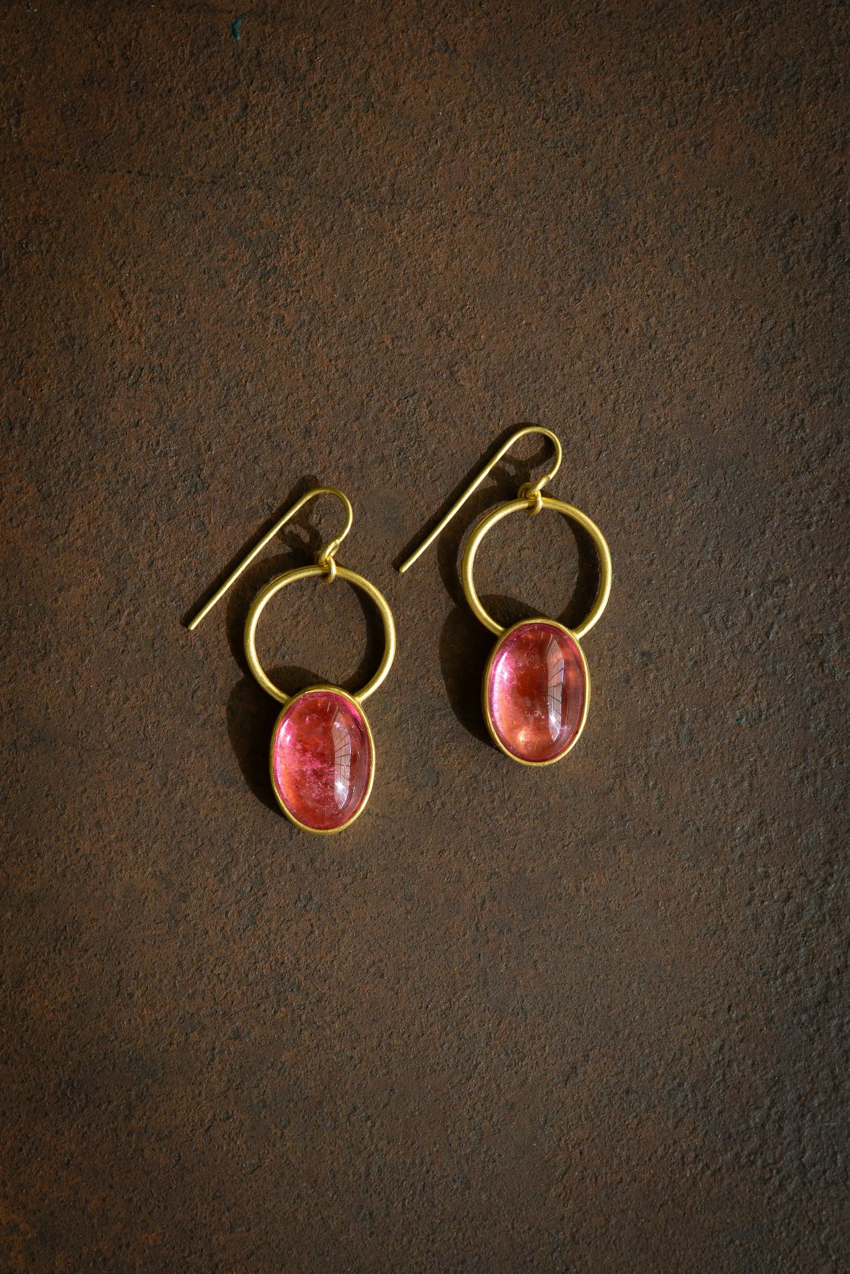 22k gold, pink tourmalines