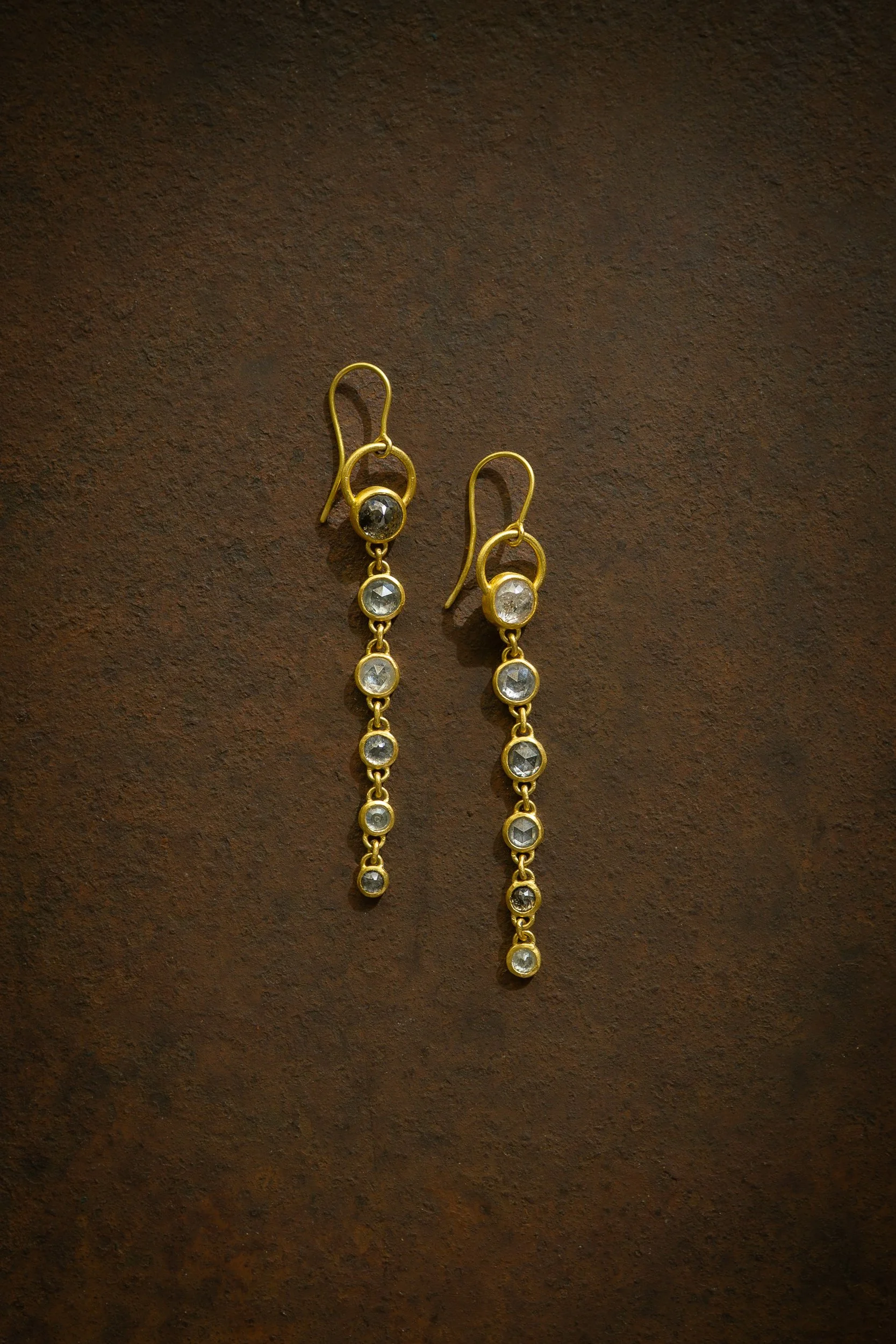 22k gold, rustic salt & pepper diamonds