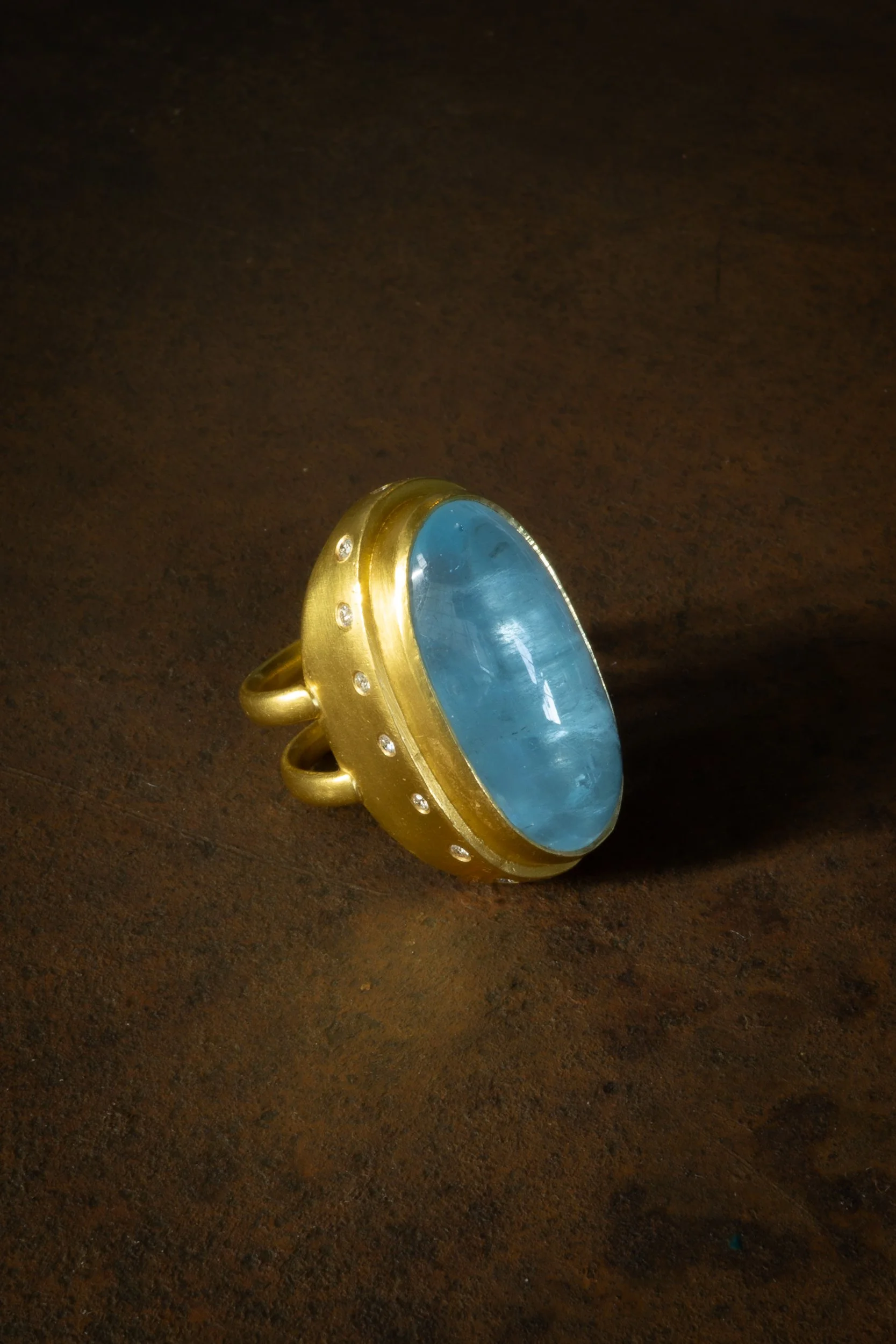 22k gold, aquamarine, diamonds